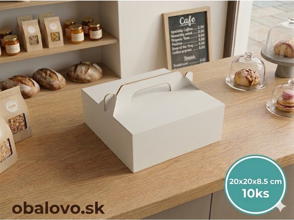 Krabice na koláče 20 cm x 20 cm x 8,5 cm / 10 ks - z bieleho papiera na zákusky a koláče