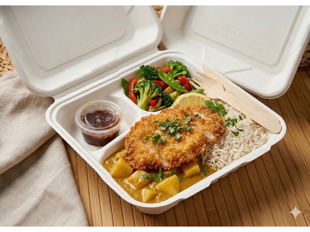 Neoddeliteľnou súčasťou dnešnej doby v gastre sú určite menuboxy na jedlo zo sebou. U nás nájdete kompostovateľné menuboxy, ktoré slúžia priateľom a rodine na stretnutiach, ako sú pikniky, donáška obedov, grilovačky, narodeninové oslavy, kempingy. Naše ekologické menuboxy sú vyrobené z cukrovej trstiny tak, že majú dvojitý uzáver, ktorý zaisťuje bezpečnú donášku a skladovanie. Môžeme ich dať do mikrovlnnej rúry aj do chladničky, takže si ich môžete vychutnať bez toho, aby ste zašpinili ďalší riad. Naše 100% biologicky rozložiteľné menuboxy na potraviny možno použiť na horúce alebo studené jedlá a nevylučujú žiadne chemikálie, pri ohrievaní jedla, na rozdiel od plastových alebo polystyrénových nádob. Menuboxy z cukrovej trstiny sú ideálne pre všetky ekologické reštaurácie, food trucky alebo cateringové firmy, ktoré musia vymeniť polystyrénové alebo plastové boxy. Tento materiál prirodzene prepúšťa vodnú paru. Môže sa to javiť ako presakovanie, ale v skutočnosti sa o presakovanie nejedná. Samozrejme k boxom Vám ponúkame príbory na jedlo z drevoplastu WPC, materiálu Refork alebo drevené príbory.