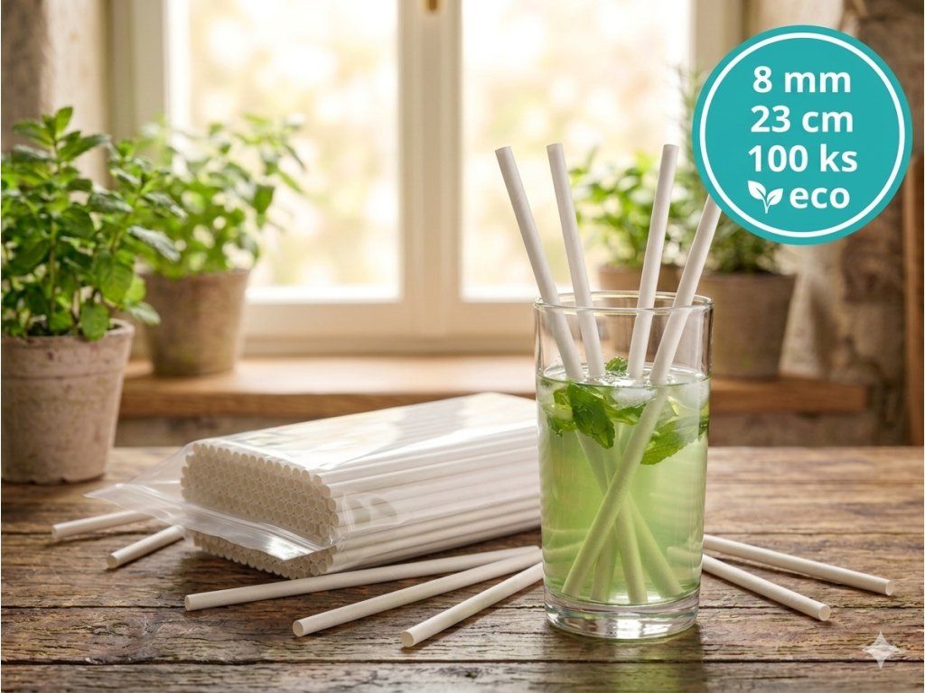 Slamky 8 mm / 23 cm / 100 ks - papierové biele