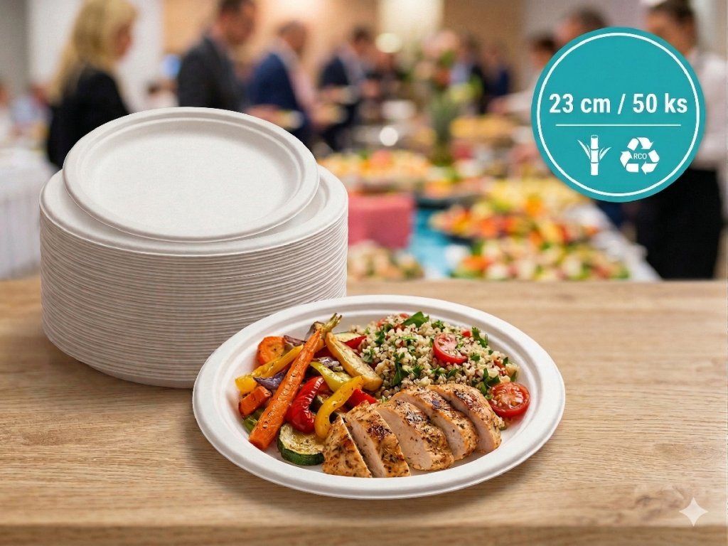 Tanier z cukrovej trstiny 23 cm/ 50 ks - biely na servírovanie jedál a dezertov